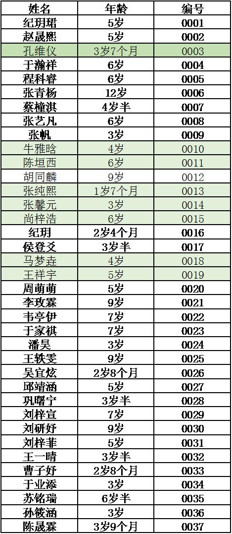 3.涂氟编号与孩子名字、年龄、电话号码一一对应,拒绝私自更换。