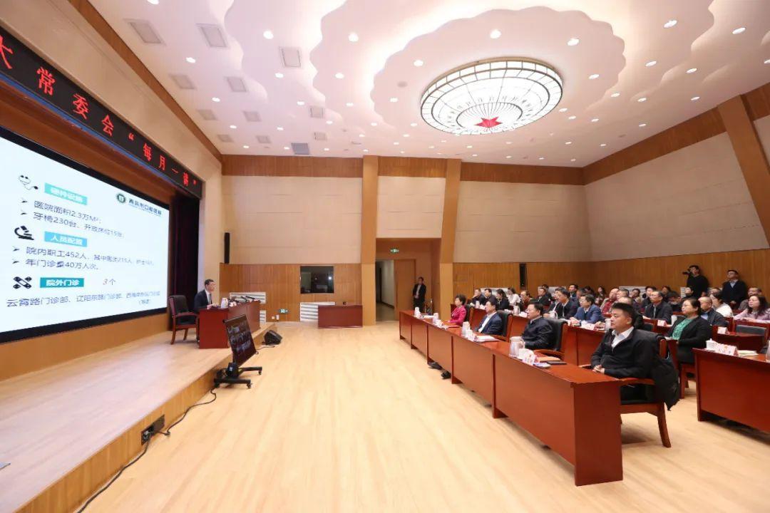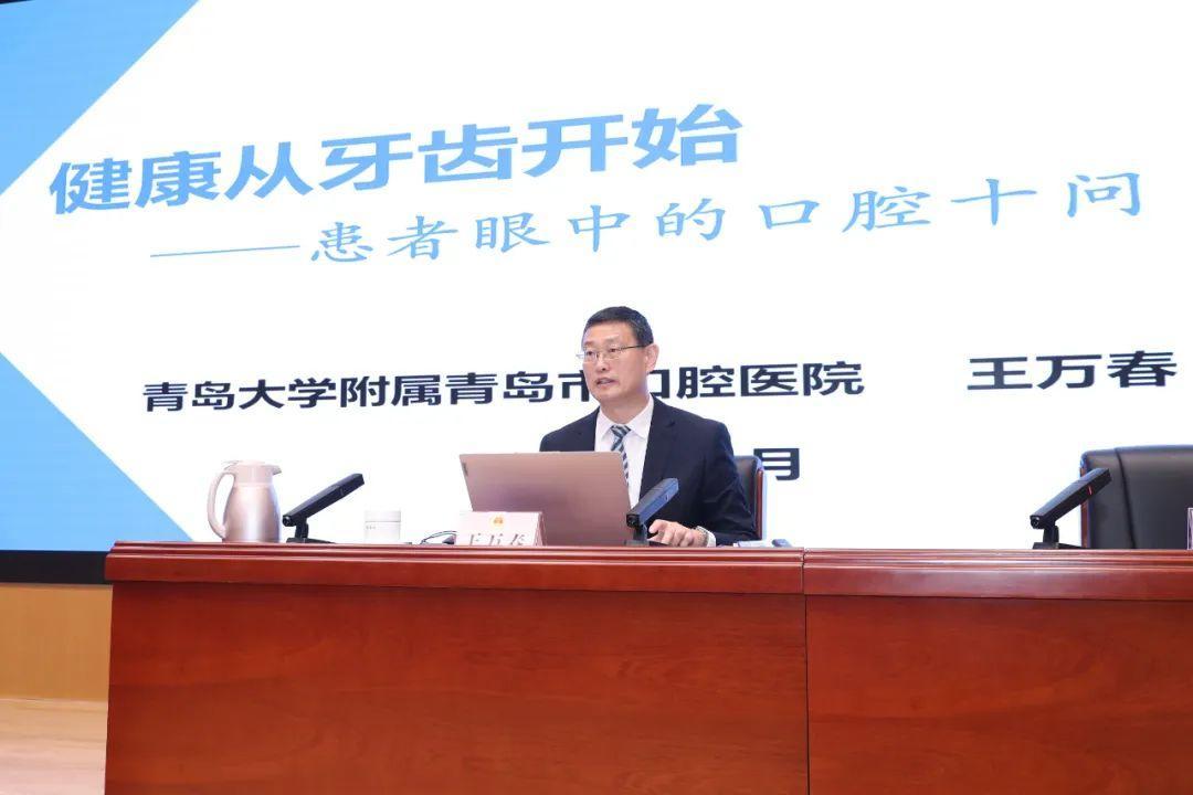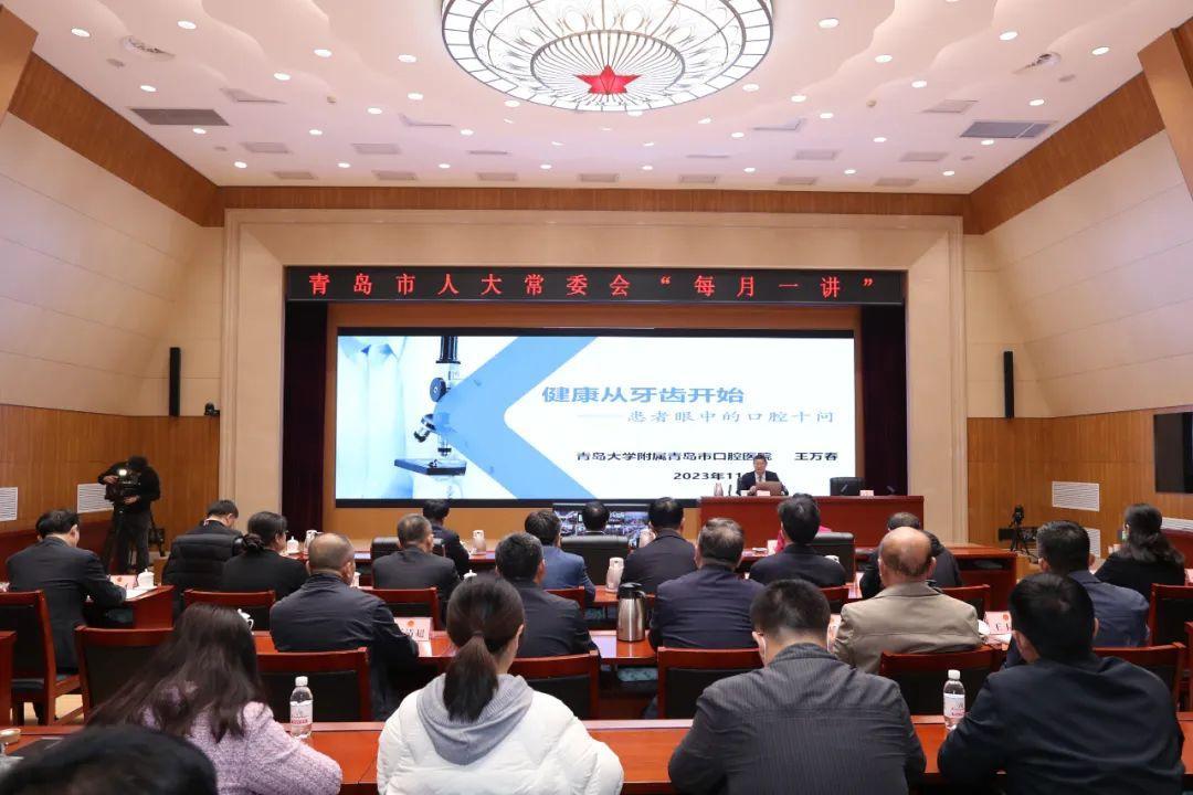11月22日上午,青岛市口腔医院党委书记、院长王万春应邀为市人大常委会作了“健康从牙齿开始”科普讲座。市人大常委会党组书记、主任王鲁明出席。市人大常委会副主任栾新主持。人大常委会副主任李红兵、张建刚出席。市人大常委会组成人员,省、市人大代表,市人大常委会机关干部参加讲座。各区(市)人大设分会场,通过视频方式收看。