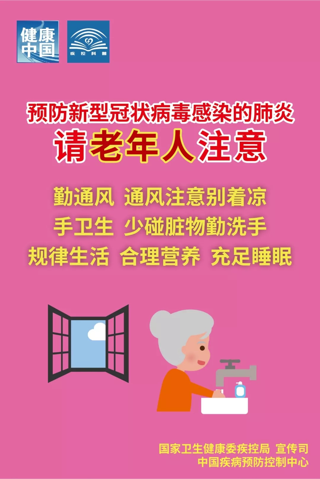 预防新型冠状病毒感染的肺炎海报——老年人注意事项