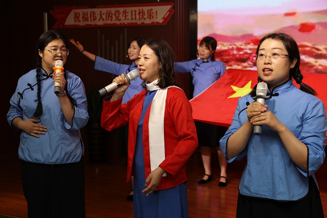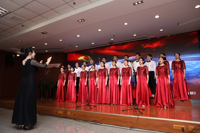 随着优美的旋律,行政党支部合唱的《我和我的祖国》拉开了比赛的序幕,《光荣与梦想》《集合在党旗下》《向往》《我爱你中国》《绣红旗》等一首首耳熟能详的红色歌曲相继响彻会场,生动展现了中国共产党的百年辉煌历程。
