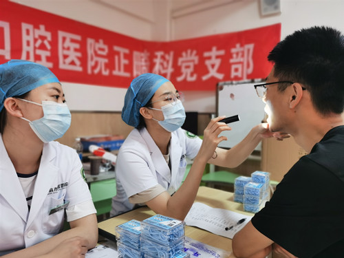 一天的时间,11名医护人员马不停歇,为600余位教师进行细致的口腔检查,详细了解了教师们的口腔烦恼,指出了每个人口腔问题,并给教师们提供了正确的护齿、规范治疗的建议。