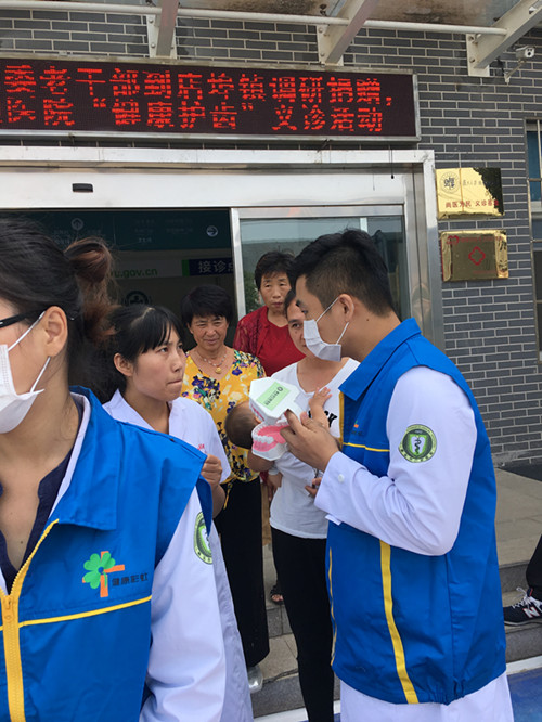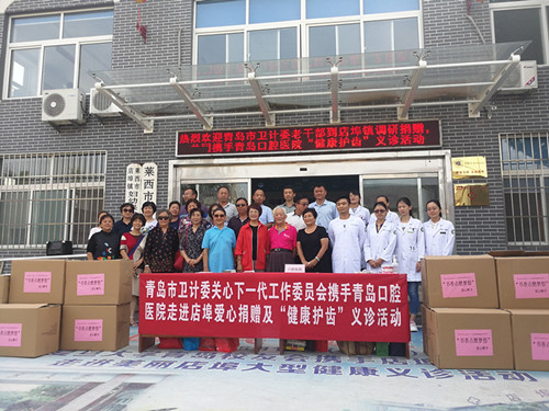 9月15日,青岛市口腔医院流动诊疗车与青岛市卫计委关心下一代工作委员会(以下简称“关工委”)携手部分离退休老干部走进美丽的店埠,进行“爱心捐赠”及“健康护齿义诊”活动。