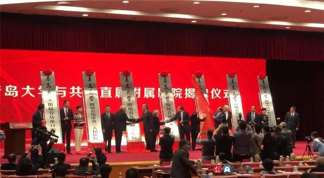 10月9日上午,青岛大学青岛医学院签约暨揭牌仪式、青岛大学与共建直属附属医院签约暨揭牌仪式在市级机关会议中心举行。省委常委、市委书记王清宪,市委常委、秘书长祝华,副市长栾新出席会议。王清宪为青岛大学青岛医学院揭牌。
