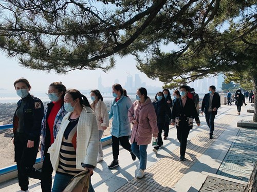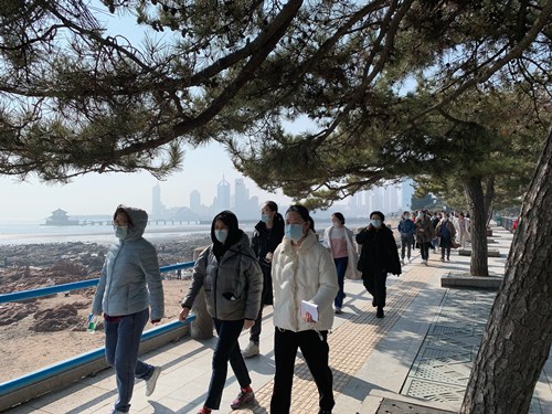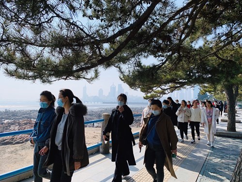 阳光、沙滩、海浪。女同胞们暂时放下工作的压力,沿着海边一线,赏海景,喂海鸥,尽情放飞心情,享受春意。大家迈着矫健的步伐,整齐有序、精神抖擞、移步换景,欢声笑语、不亦乐乎。
