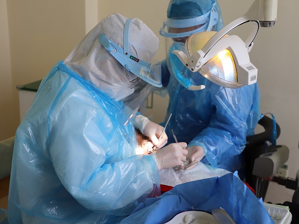 面对紧急且复杂的病情,刘燕医生及时汇报给科主任,先止血、牙齿复位、牙槽骨固定,在科主任的指导下,刘燕医生进行了前期治疗。但孩子太小了,无法进行有效的沟通,头乱晃不好操作、口水多无法隔湿、牙齿短没法固定,两次固定失败,只能紧急求助。