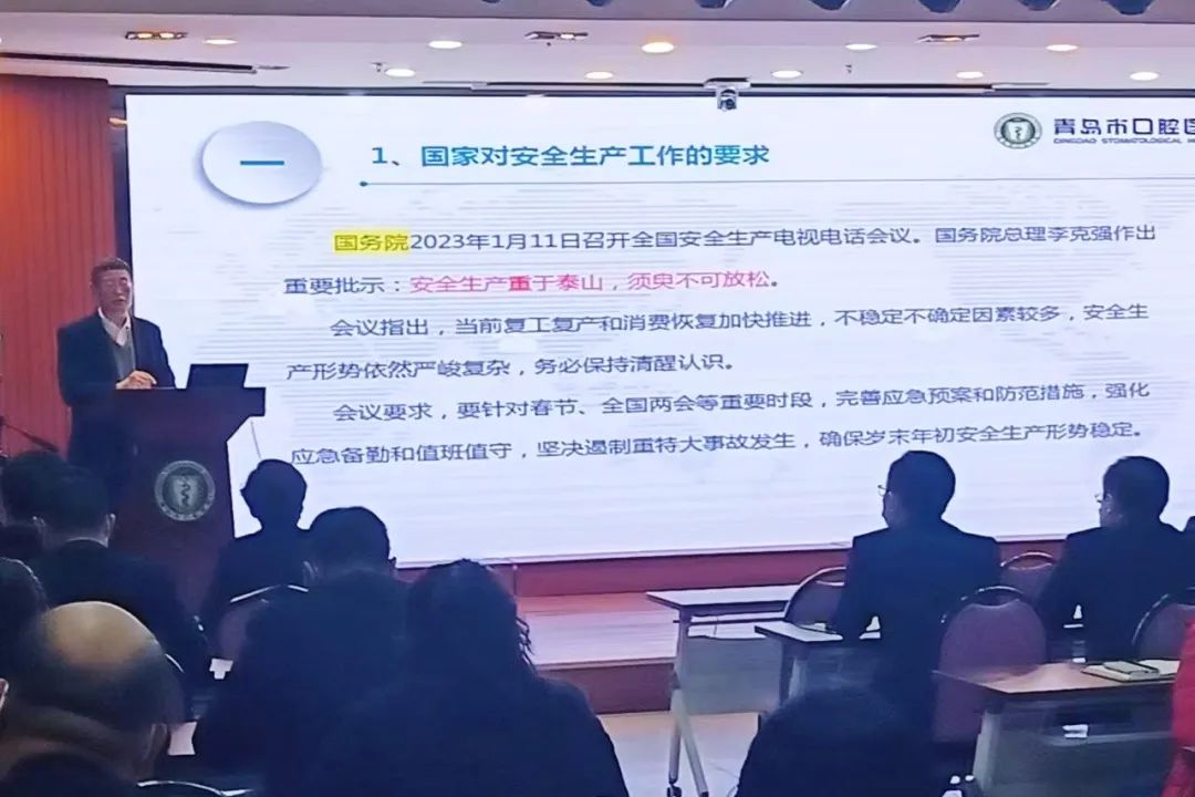 为做好2023年春节节后稳岗复工工作,进一步强化安全生产意识,1月30日,青岛市口腔医院组织覆盖全员的安全生产“开工第一课”活动,由党委书记、院长王万春担任第一授课人。