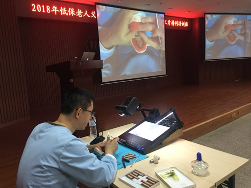仪式结束后,市项目专家组组长青岛大学医学院附属医院口腔修复科主任刘杰、项目专家组成员青岛市口腔医院修复科主任王明臻,针对全口义齿修复过程中易出现的问题进行了针对性授课;并由青岛市口腔医院修复科技师刘晓斌进行了全口义齿牙排列,视频直播实操培训。