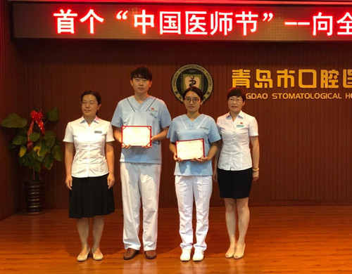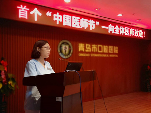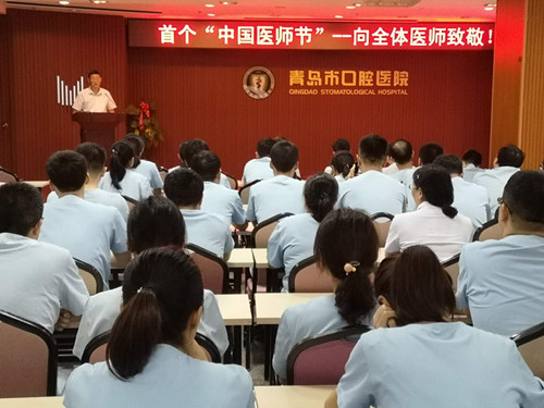 8月17日我院全体医师欢聚一堂,观看“名家访谈”医师节记录片,感受名家在从医之路上的坚持与奉献精神;院领导也深切慰问全体医师,并勉励我们要刻苦钻研,精益求精;优秀医师代表杨玉娥主任代表全体医师发言,表达我们为医学事业为医院发展源源不断默默奉献的决心;最后在医务科臧艳君主任的带领下,伴着清晨明媚的阳光,在一段铿锵有力的医师誓词:“我志愿献身医学事业,恪守医德,刻苦钻研,精益求精,忠于职守,廉洁行医,不谋私利……”声中结束了青岛市口腔医院2018年首个“中国医师节”活动。