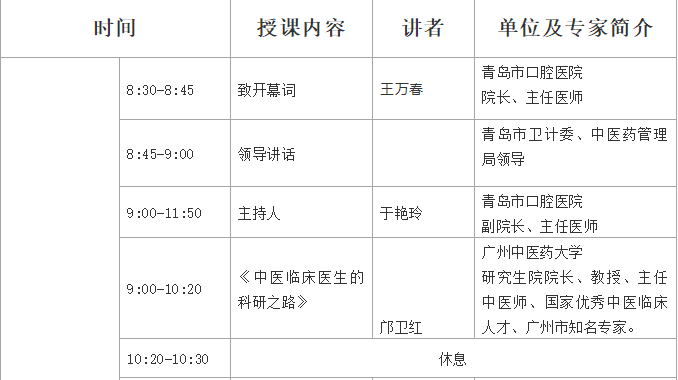 为推广粘膜病中医优势病种,促进中医专病(专技)特色门诊建设,提高中西医结合牙周粘膜病诊疗中心及专病门诊的管理水平,青岛市口腔医院将举办“中西医结合口腔粘膜病培训班”省级中医药继续教育项目。本次会议的主题是“传承 创新 发展”。届时将有广州中医药大学邝卫红教授、四川大学华西口腔医院陈谦明教授、北京大学口腔医院口腔粘膜科刘宏伟教授、青岛市中医医院周兆山教授等口腔粘膜病方面的专家前来授课。