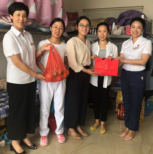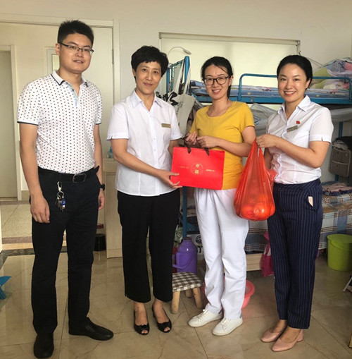 在中秋佳节即将来临之际,我院开展“中秋单身职工送温暖”活动。9月19日中午,由医院党总支书记王爱莹带队来到单身宿舍,看望医院单身职工,为他们送上节日的祝福和慰问品。