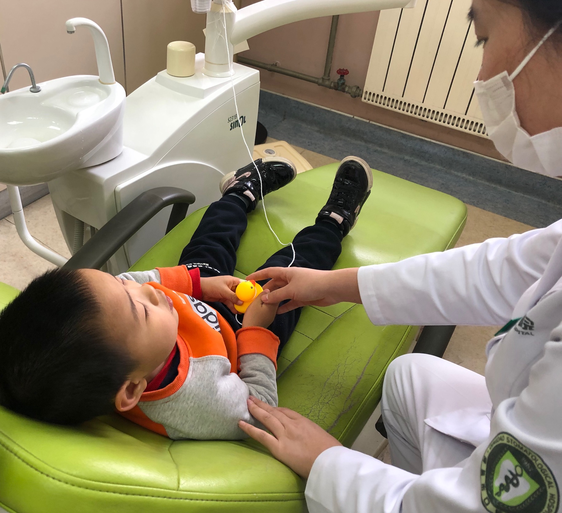 例如在口腔颌面外科门诊手术时,因为无菌要求,需要在患者头上铺一块无菌的手术洞巾来盖住除口腔以外的部位。患者因为眼睛被遮盖有时会感到紧张。另外由于口腔颌面外科的手术大多集中在“嘴里”,医生在患者口腔内操作时患者不方便发声。口腔颌面外科的医生和护士们在发现了这一现象后,就在每把诊椅上配备了一个“小黄鸭”让患者握在手里,既可以舒缓压力,又可以在感觉不适时握捏“小黄鸭”发出声音,提醒医生及时停下操作。