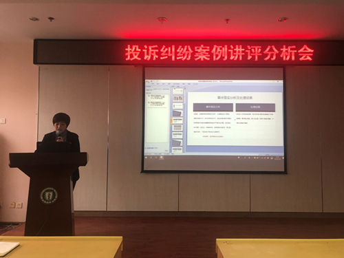 会上,门诊综合管理部杨婧将近期较典型的4起投诉案例,从临床诊疗过程、投诉发生原因、医院应对处理、工作改进措施等方面进行了分析和讲评,并给踏入工作时间不长的年轻医护人员提出警示方法。