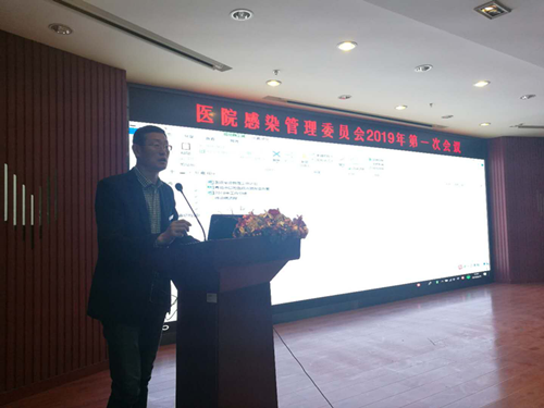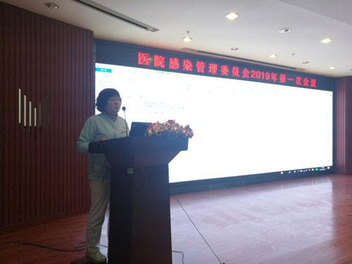 会议首先由医院感染管理科吴双燕主任用幻灯片对2018年医院感染管理工作总结、2019年医院感染管理工作计划等进行了汇报,对于目前存在的具体问题分别以照片和图表的形式加以展示及说明,让参会人员更加直观的了解目前医院感染管理现状。