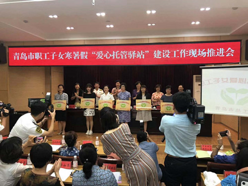 8月27日上午青岛市总工会召开全市职工子女寒暑假“爱心托管驿站”建设工作现场推进会。会上,青岛市口腔医院成为首批职工子女寒暑假“爱心托管驿站”授牌单位,并作为市卫健委首家职工子女寒暑假“爱心托管驿站”代表交流发言。