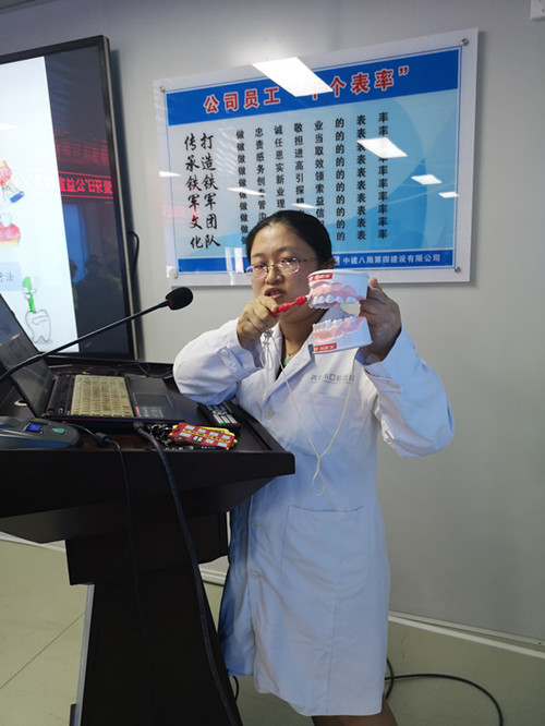 口腔健康,全身健康。为庆祝新中国成立70周年,在全国第31个“920爱牙日”来临之际,市口腔医院党团员再出发,为中建八局四公司80余职工进行爱牙护齿健康讲座及义诊活动。
