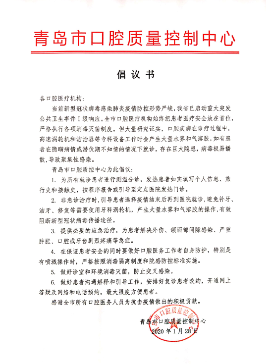 青岛市口腔质控中心倡议书