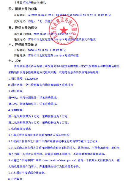空气检测服务和物资搬运服务采购项目竞争性磋商公告(章)
