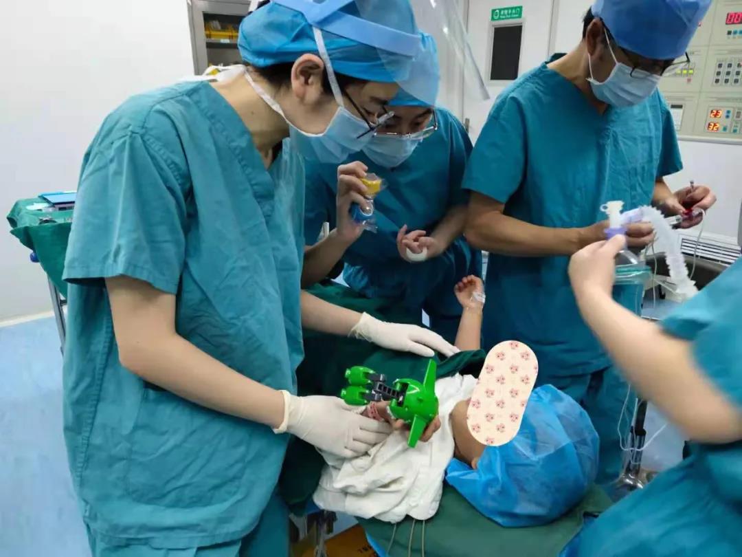 手术定在了6月1日下午,小家伙在护士阿姨的引导下,勇敢地自己走进了手术室。在抱着护士阿姨给她的一个可爱的小玩具后,然一略有些紧张神情慢慢放松下来。此时麻醉医生和护士拿来一个大“气球”(麻醉面罩)请然一帮忙“吹气球”。吹了几口气后,打了个大大的哈欠,孩子安稳地进入了梦乡。