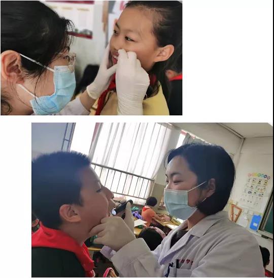 医生们也耐心细致的检查每一位小学生的牙齿,包括是否长全、窝沟深不深、是否有其他口腔问题等。