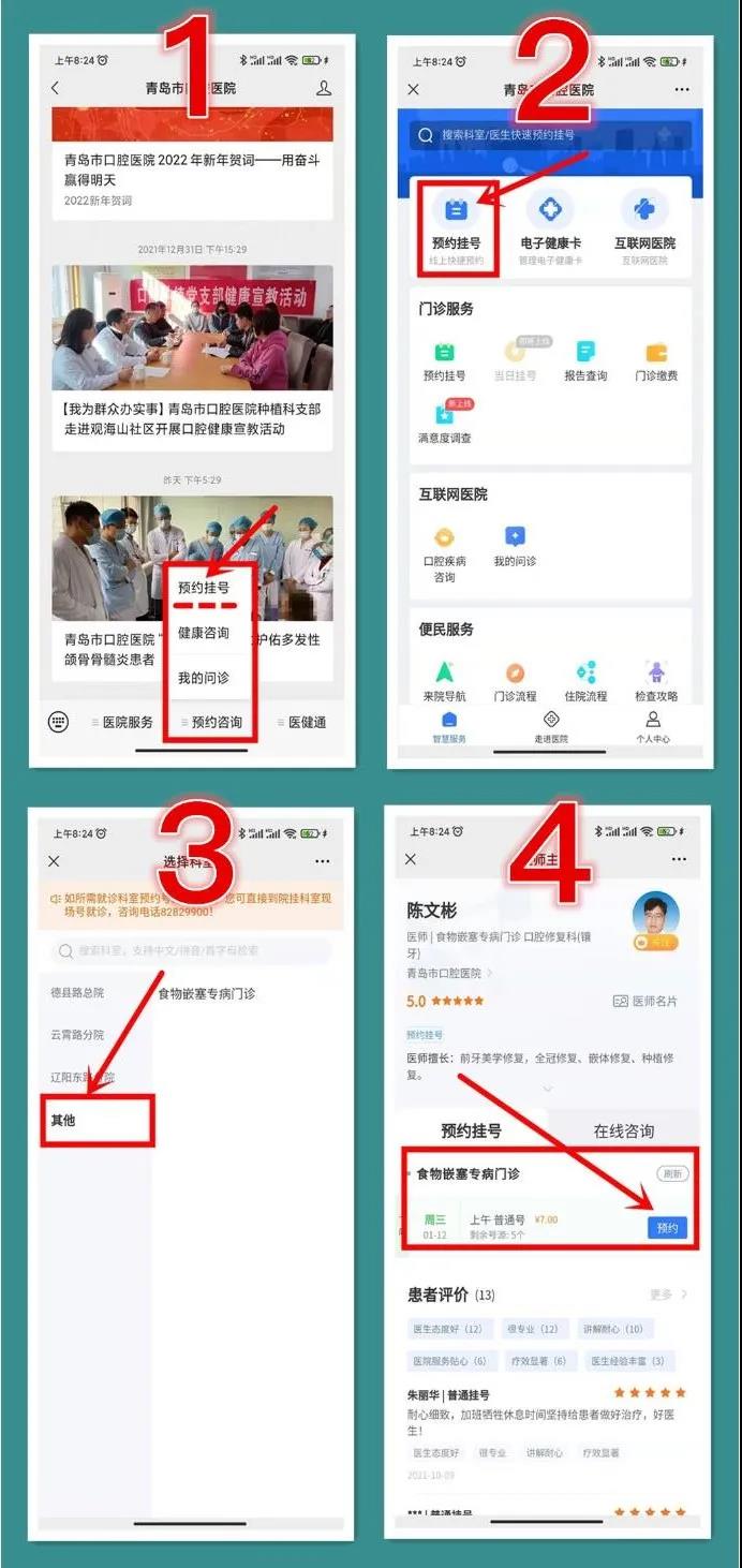食物嵌塞门诊每周三上午开诊。如果您也一直为塞牙所困扰,可以通过青岛市口腔医院微信公众号、慧医APP预约,也可以来院现场挂号。