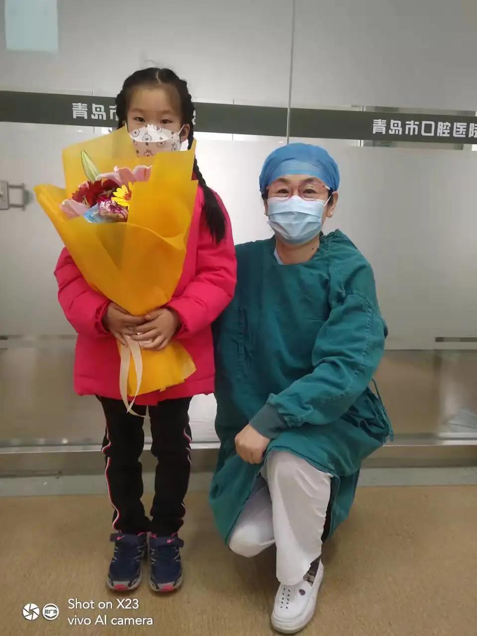 新年伊始,青岛市口腔医院云霄路门诊就迎来了子贺小朋友,她特意带来了亲手挑选的鲜花和简笔画,要送给滕琦主任,感谢滕主任帮自己解除了看牙的心理障碍和恐惧。
