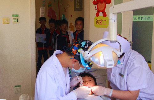 在项目实施前期,市口腔医院总院、东部分院和新都口腔医院分别组织窝沟医护人员进行了专项培训,认真细致地做好项目实施前期的各项准备工作,确保车辆及时到位,学生们的候诊场地整洁宽敞,专用牙椅、材料、器械准备充分。在候诊期间,医院为同学们播放了口腔健康宣教卡通动画,分组对孩子们进行口腔检查,为符合条件者由经验成熟的儿童口腔医护人员进行窝沟封闭和涂氟。项目实施规划合理,安排有序,医护人员与学生互动愉快,校方与院方配合顺畅,受到了同学们的欢迎和老师的好评。