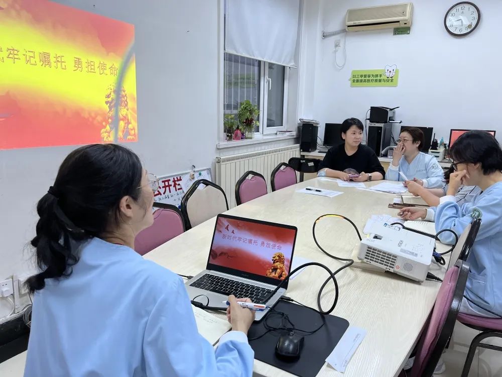 首先,老年口腔科党支部书记赵飞以“党员干部勇担使命”为主题带领全体党员同志进行了专题党课学习。此次党课,立足本科室工作实际情况、结合疫情防控常态化的当前形势,对年轻党员干部提出了要求。
