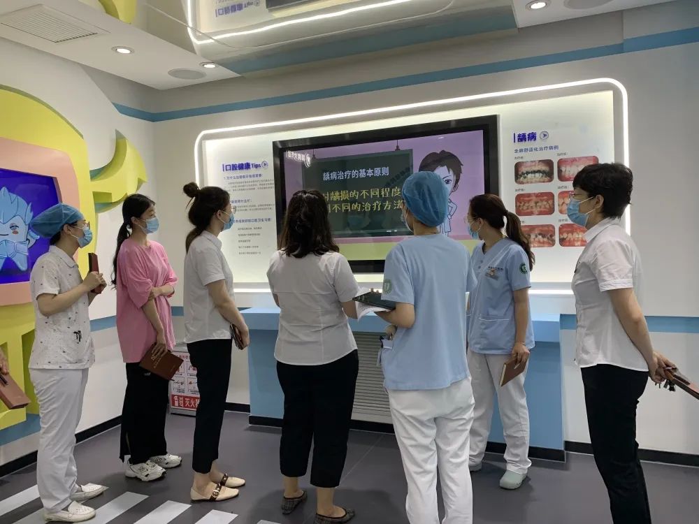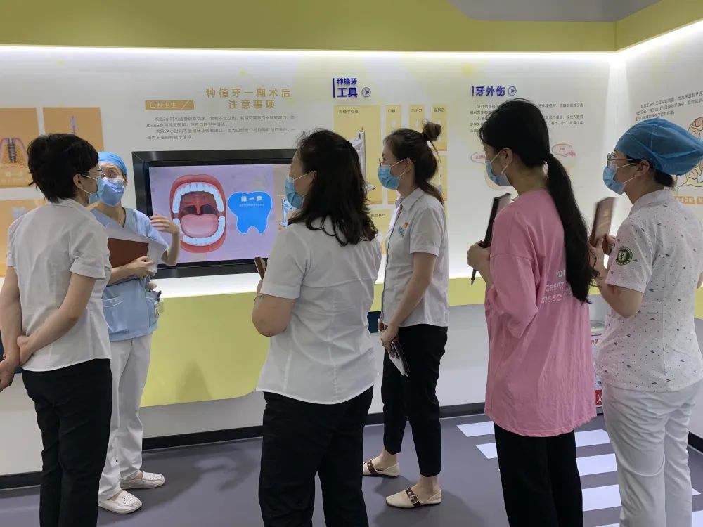 活动中,全体党员走进全新升级的青岛市口腔健康教育基地,通过观看科普视频、聆听讲解和亲身体验,学习口腔健康科普技巧,提高服务患者的能力。大家还参观学习了口腔医学发展史以及医院发展历程,医院“精医明德,大爱至诚”的精神,再次让所有党员受到了鼓舞和感染。